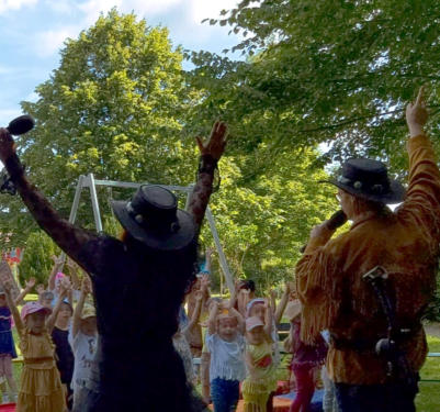 Ungezähmte Abenteuer in der endlosen Prärie! Young Shatterhand und Winni Blue laden mutige Greenhorns ein, sich den echten Herausforderungen des Wilden Westens zu stellen. Wer das Cowboy-Handwerk erlernen will, braucht flinke Füße, einen scharfen Blick und ordentlich Mumm in den Knochen! Doch aufgepasst: Diese Ausbildung ist kein gemütlicher Ritt auf dem Pony! Revolver und Feuerwaffen? Braucht hier keiner! Ein echter Westernheld beweist sich durch Mut, Geschick und Teamgeist. Und dann wären da noch diese vielen alten Gerüchte um den sagenumwobenen Mississippi- Schatz Gibt es ihn wirklich? Findet es am besten selbst heraus! Doch haltet euch gut im Sattel, denn diese Mitmach-Wildwestshows sind nichts für schwache Nerven! Wer glaubt, sich entspannt zurücklehnen zu können, landet schneller im Kakteenbeet als ein Hufeisen im Saloon-Spucknapf!